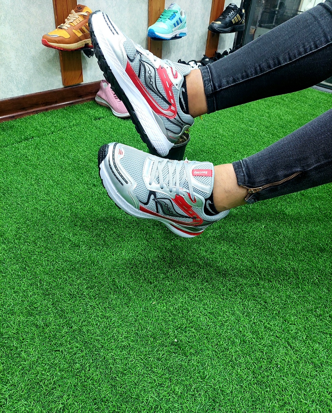 کتونی مردانه اسپورت استایلی و ورزشی ساکونیsaukony رنگ طوسی و قرمز